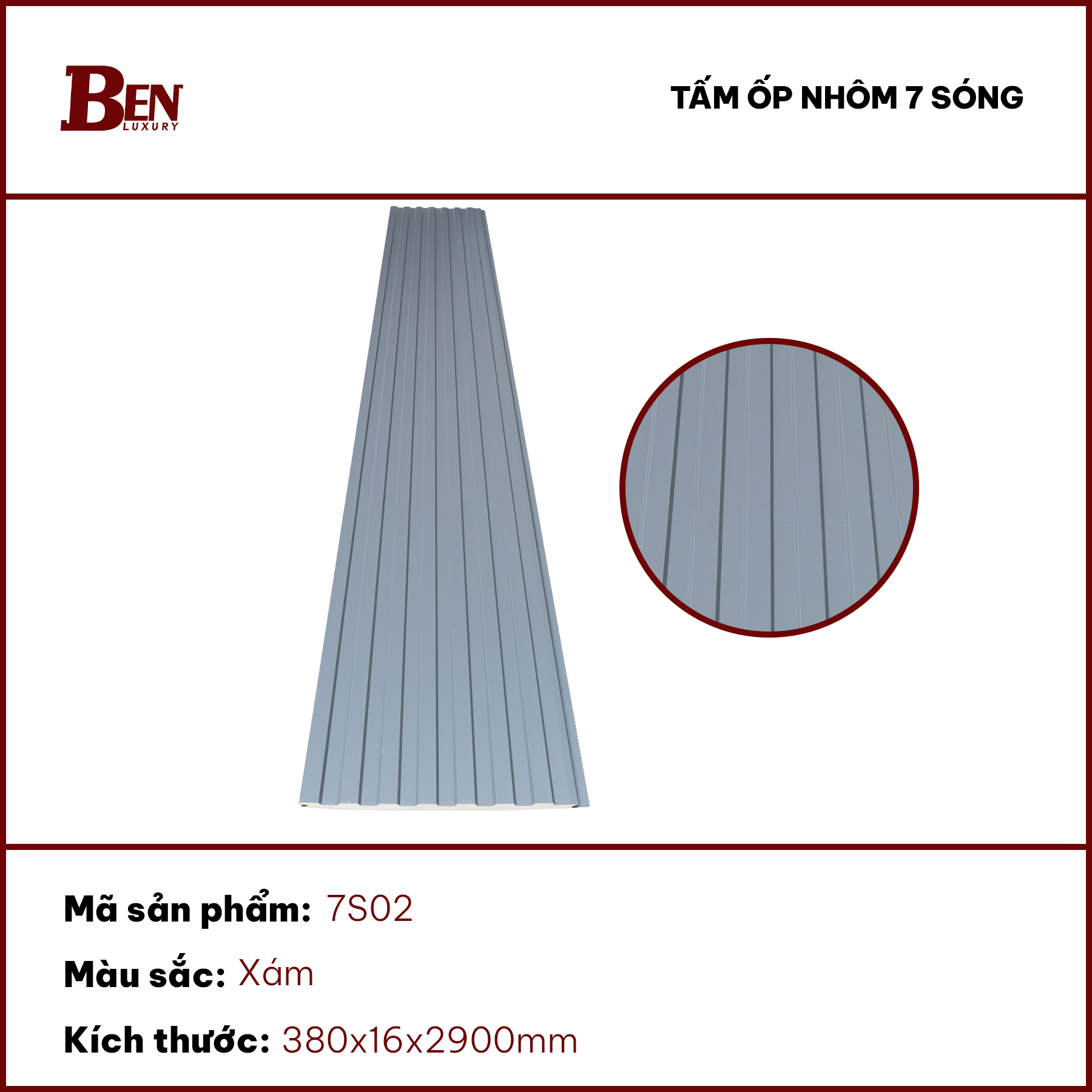 Thông số kỹ thuật chi tiết tấm ốp nhôm 7 sóng 7S02 Benluxury